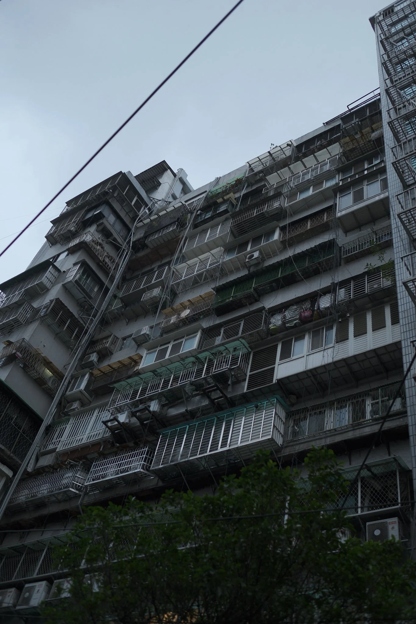 Here, we can see how differently each resident uses them: some cages serve as makeshift storage, others are used for drying clothes, and a few are filled with potted plants. Although Taipei isn’t particularly green, it’s common to see potted plants on the streets or tucked into spaces like these window cages, adding a touch of nature to the urban landscape.